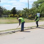 Dentro del Programa de Mejoramiento Urbano que el Municipio lleva adelante, personal de la Unidad de Gestión de Médanos continúa con el mantenimiento de calles y espacios públicos en el sector céntrico y sobre los accesos a la ciudad.