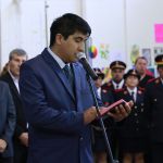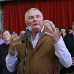 Antes del discurso final, el Intendente Carlos Bevilacqua entregó un reconocimiento por su labor de tres generaciones a Arnoldo Schwam y familia, productores de ajo. Luego se dirigió a los presentes con unas palabras: