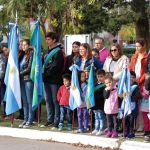 Acompañaron el acto: concejales, Pablo Palacios (INTA), veteranos de Malvinas, inspectora de Modalidad Adultos, Leticia Granero, presidenta del Consejo Escolar, Andrea Sposetti, consejeros escolares, autoridades policiales, embajadora de M. Buratovich, Noelia Martinez, instituciones locales y vecinos.