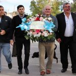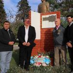 En memoria de su fundador Santiago Buratovich y de todos aquellos que construyeron la historia del pueblo, el secretario de Gobierno, el delegado municipal, el presidente de la Comisión de Festejos, Marcos Navarrete y el vecino, Ándres Haag, hicieron entrega de la ofrenda floral en el monumento a Buratovich. Luego, el Diácono Oscar Vides dio su bendición a todos los presentes.