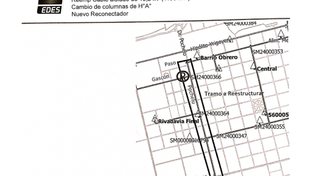 - Reemplazo de 1150 metros de tendido del Alimentador 2 – por calle Pochelú entre Paso y Colombres – cambiando la línea existente por cable aislado de 13,2 kV, cambio de columnas de hormigón terminales de la Línea Aérea de Media Tensión existente y el reemplazo de la aislación existente por aislador tipo Line Post. Además se instalará un Reconectador en Pochelú y Gascón para aislar las falla de la zona sub-urbana.