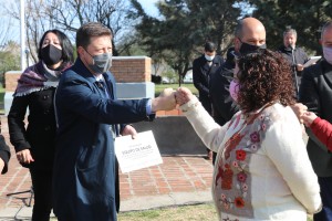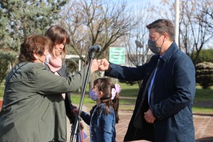 Durante el acto, el intendente, el director de la UGM Hilario Ascasubi, y Mauro Massi, de la Comisión de Festejos, entregaron reconocimientos al personal de Salud en agradecimiento por su entrega y compromiso de la Salud de los vecinos durante la pandemia.