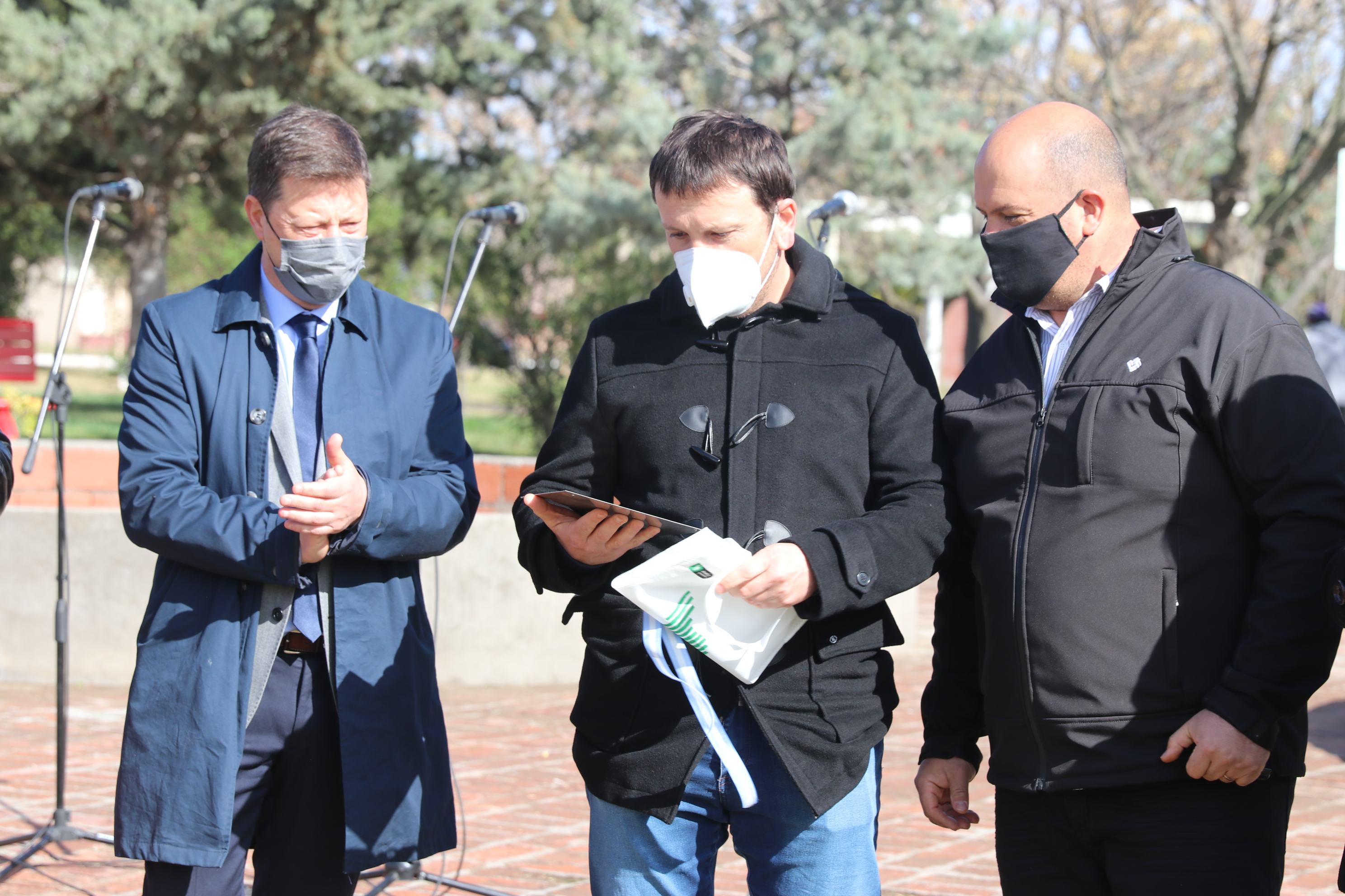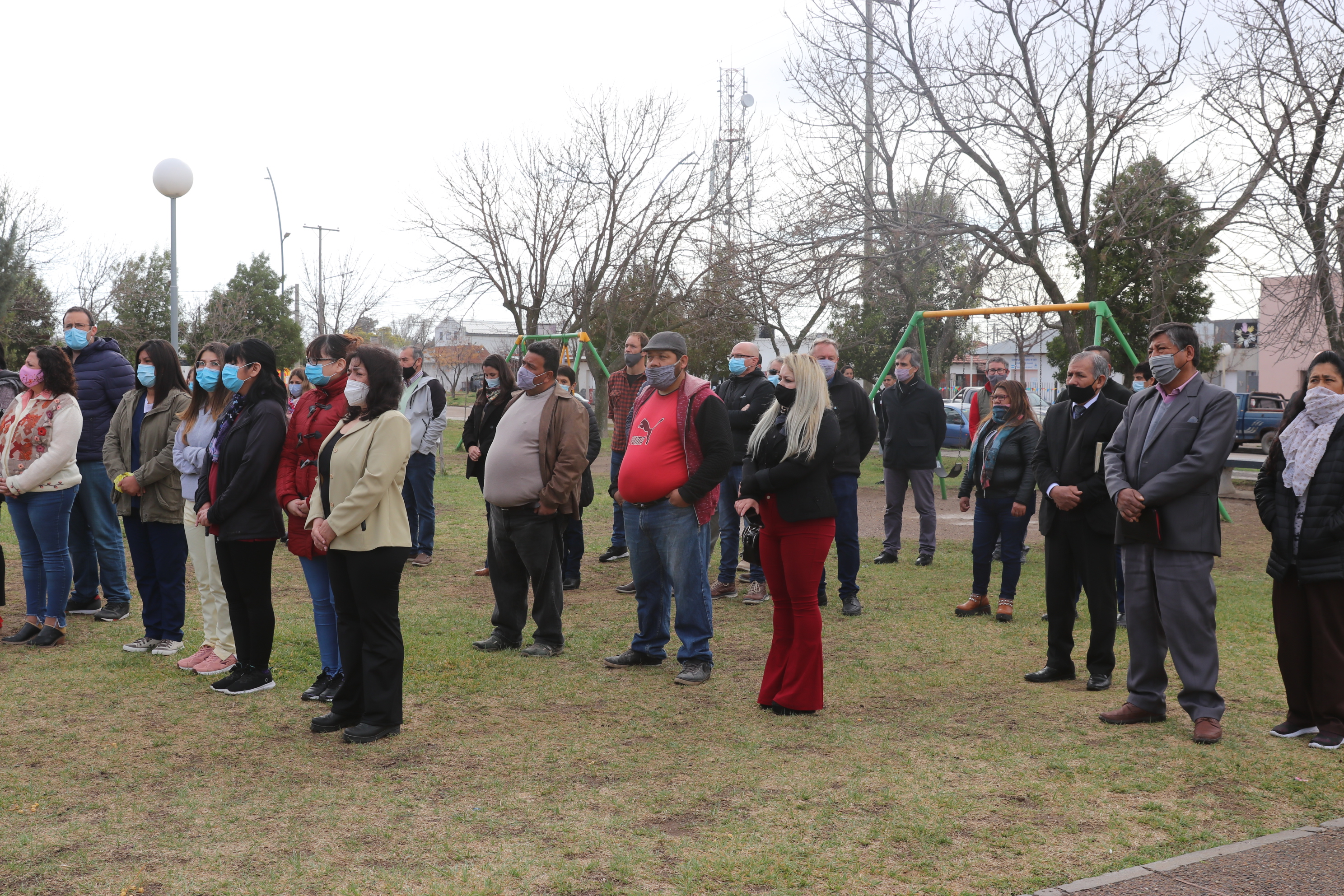 Durante el acto, el intendente, el director de la UGM Hilario Ascasubi, y Mauro Massi, de la Comisión de Festejos, entregaron reconocimientos al personal de Salud en agradecimiento por su entrega y compromiso de la Salud de los vecinos durante la pandemia.