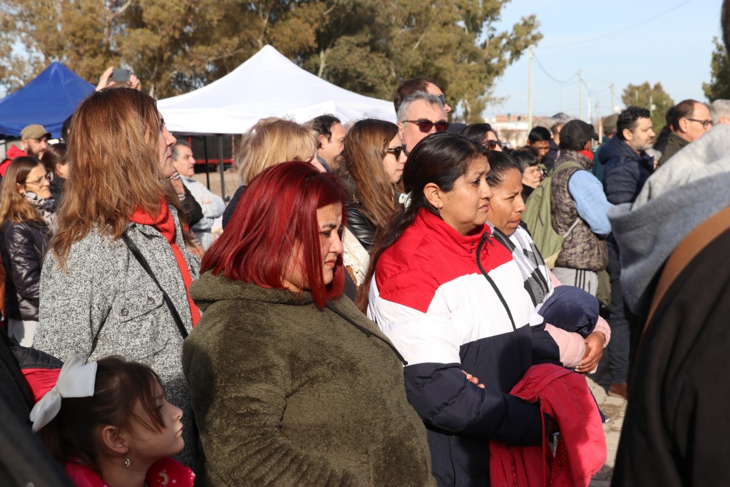 Para dar inicio al acto oficial, se realizó una invocación religiosa a cargo del Párroco José María Masson. Luego escuchamos las sentidas palabras de una vecina de la localidad, la Sra. Rosana Gabriela Molina, profesora del Instituto de Formación Docente N°69.